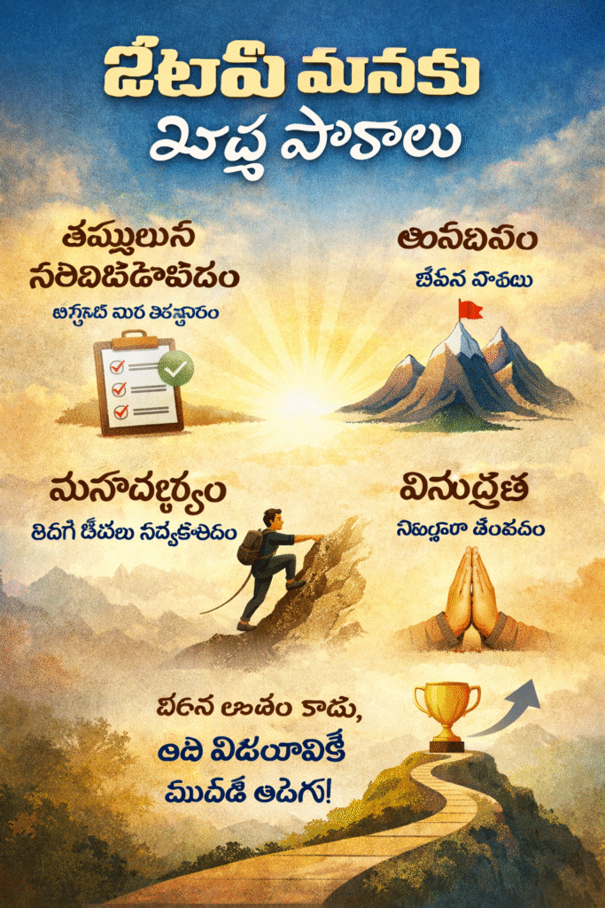 - తప్పులను సరిదిద్దుకోవడం: ఎక్కడ తప్పు జరిగిందో తెలుసుకునే అవకాశం కేవలం ఓటమి ద్వారానే లభిస్తుంది.